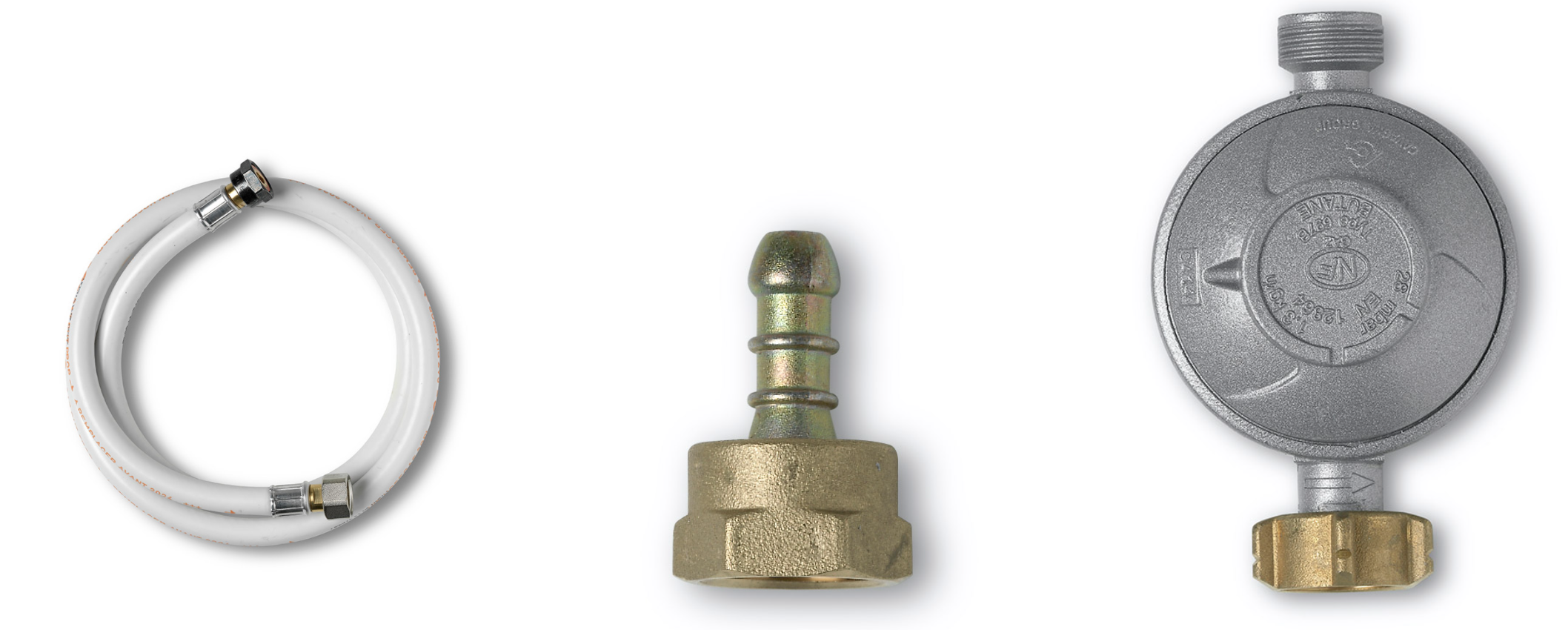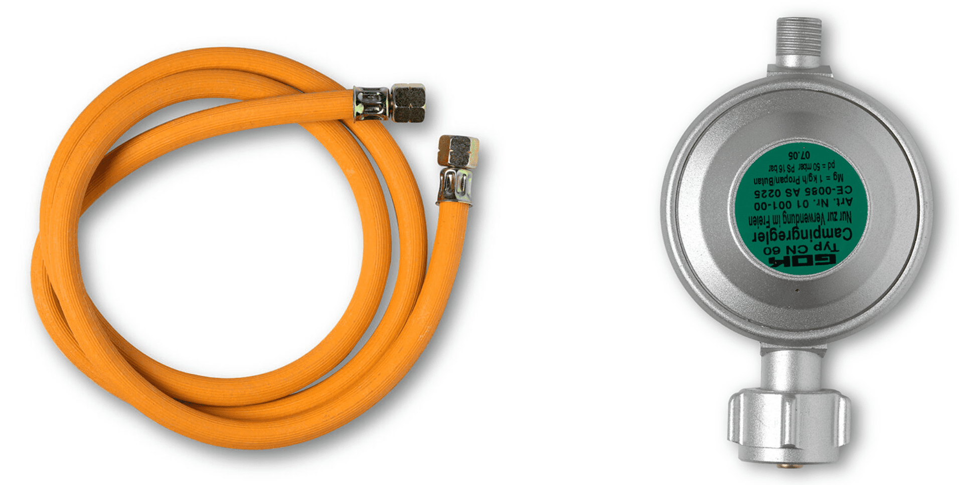 Y esto mismo ocurre en Alemania, donde necesitarás una goma de gas y un regulador de gas adaptados a este país. En este caso son los elementos que puedes ver a continuación.