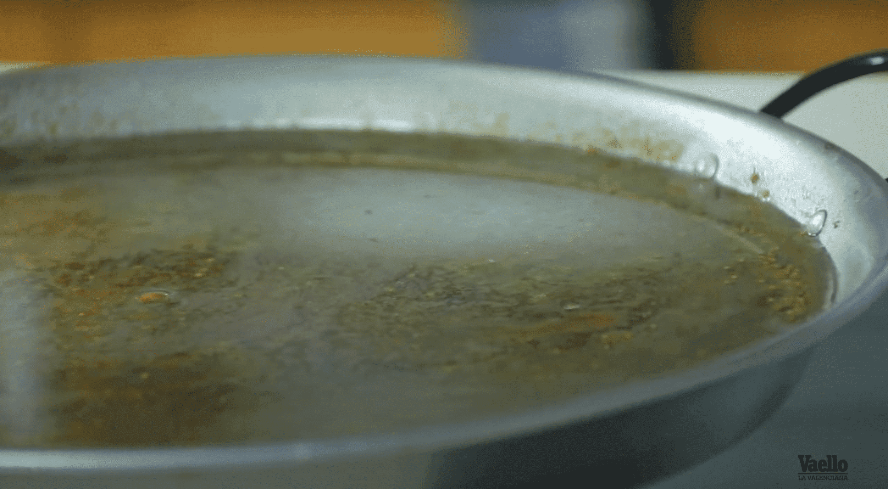 - Añade agua a la paellera y vierte unas gotas de líquido friegaplatos, la cantidad dependerá del grado de quemado de tu paellera.